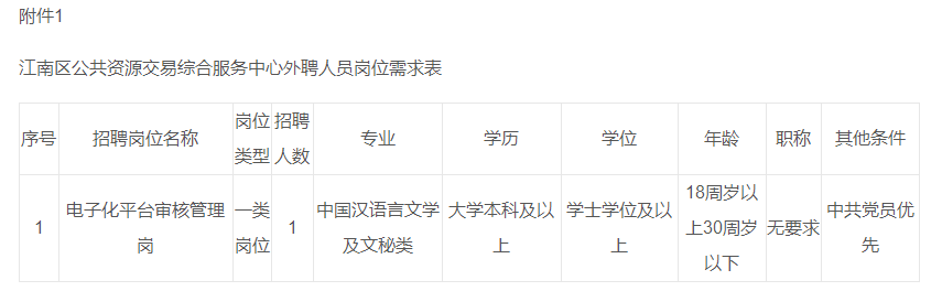1.江南区公共资源交易综合服务中心外聘人员岗位需求表