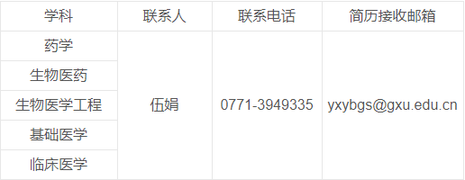 备注:有意应聘者,请将《广西大学教师岗位申请表》、《广西大学医学院应聘信息表》及个人简历发送到相应邮箱。